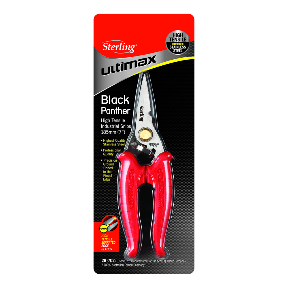 185mm Black Panther Red Hi Tensile Industrial Snips