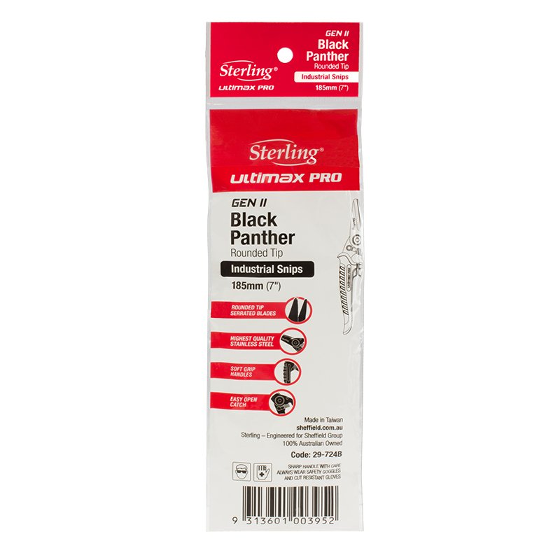 185mm Ultimax Pro Black Panther Gen II: Round Tip Industrial Snips Bulk OPP Bag