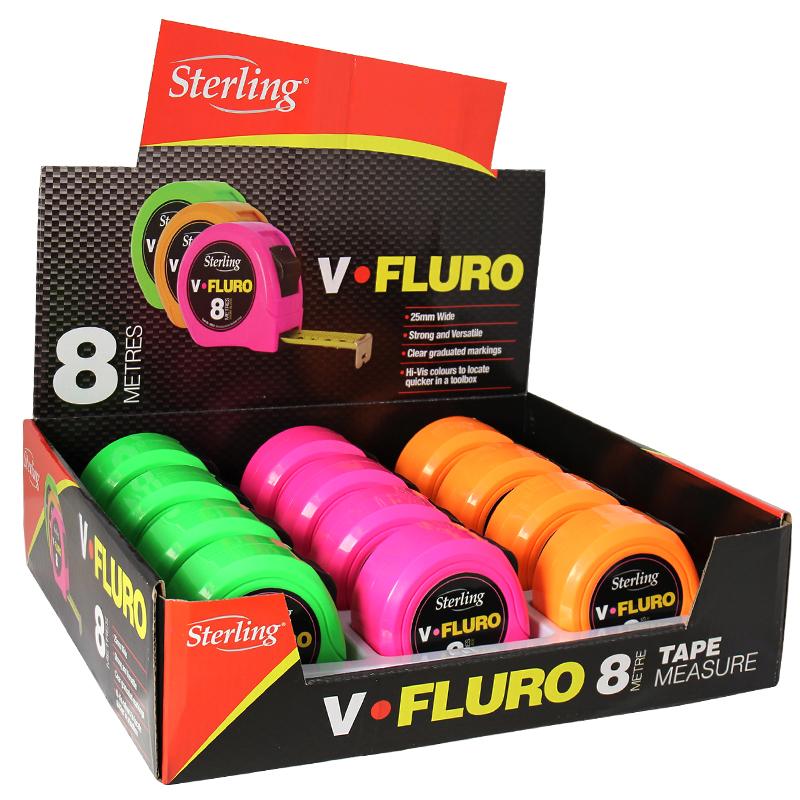 8m x 25mm V-Force Fluro Measuring Tape