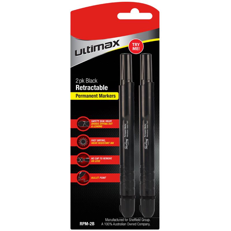 Sterling Retractable Permanent Marker – 2 Pack Black