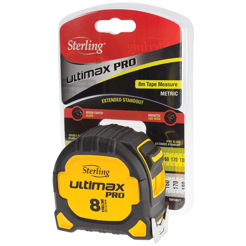 - Sterlings Ultimax Pro tape measure utilities SuperBlade technology to achieve an extended standout. Perfect for long distance measuring, the Ultimax Pro can reach great lengths, while staying rigid.