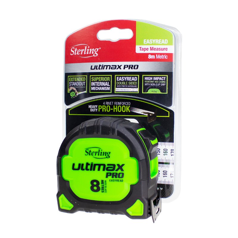 - Sterlings Ultimax Pro Easyread has been developed for optimised readability. The double-sided, white, printed blade features vertical measurement markings for ease of use and improved distance reading. These markings are quickly becoming a must-have amongst tradesmen
