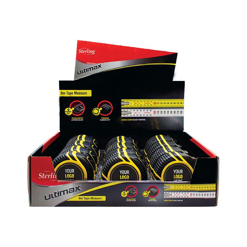 Sterling Ultimax Tape Measure 8m x 25mm Metric Unlabelled for Custom Labels