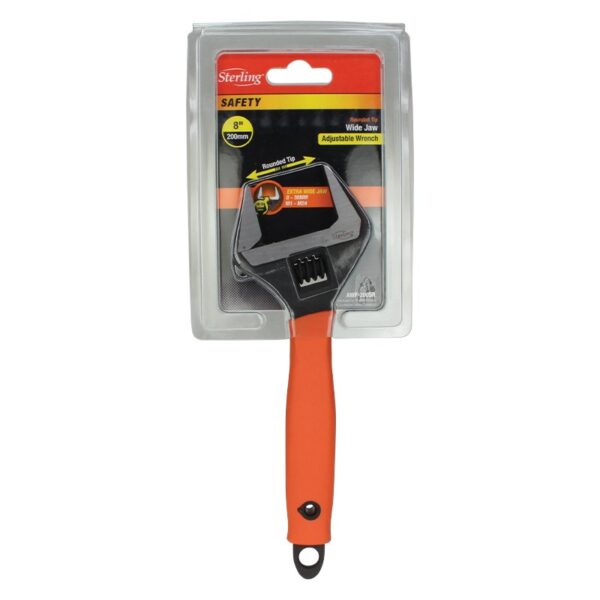 Wide Jaw Wrench 200mm (8”) L/H Thread Safety Nose with Orange Grip Carded